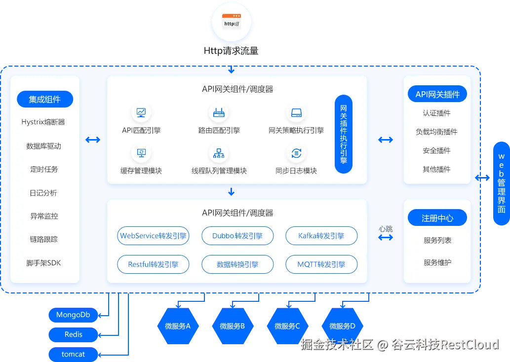 实现:在网关层面配置全局、服务级别或消费者级别的速率限制策略(如每秒N次请求)。使用Redis等分布式缓存作为计数器后端,确保策略在网关集群中生效。