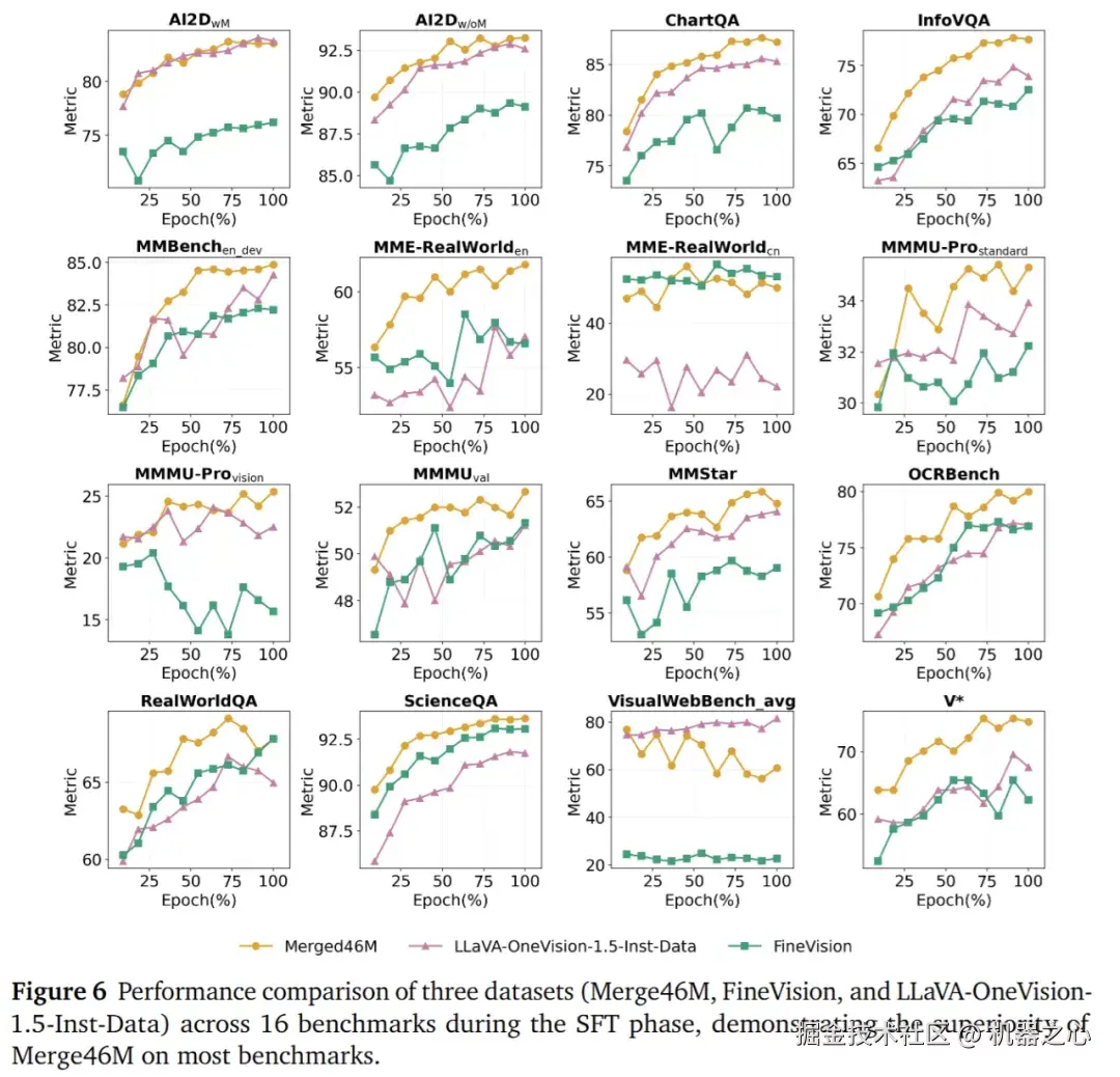 指令数据 22M 覆盖八大类别:Caption、Chart & Table、Code & Math、Domain-specific、General VQA、Grounding & Counting、OCR、Science。通过多源聚合、格式统一、指令重写、双语互转、模板去同质化与安全筛除,保持类别与难度分布均衡。并且我们的指令数据叠加 FineVision 数据集之后,结果会继续增加。