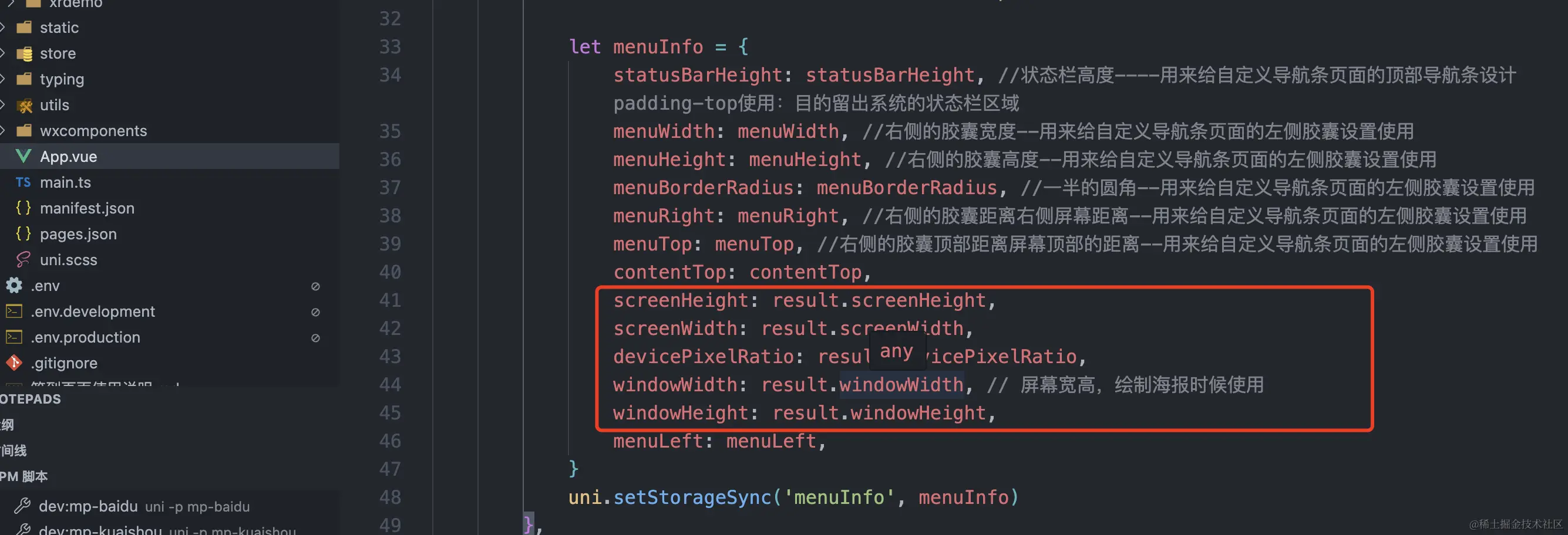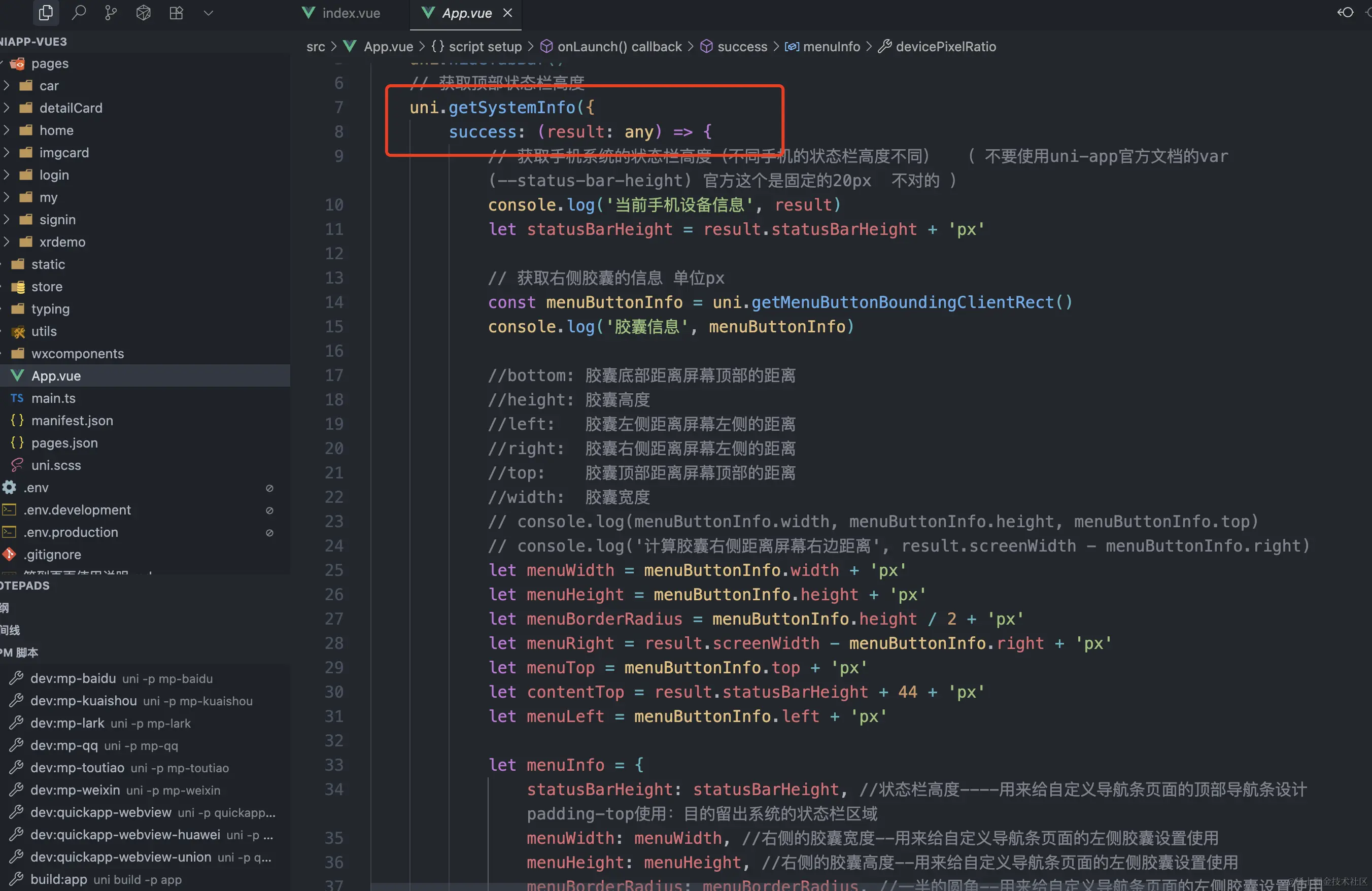 因为渲染的时候,需要用到容器的宽高和渲染的宽高,所以需要先在全局App.vue中获取到手机屏幕尺寸信息: