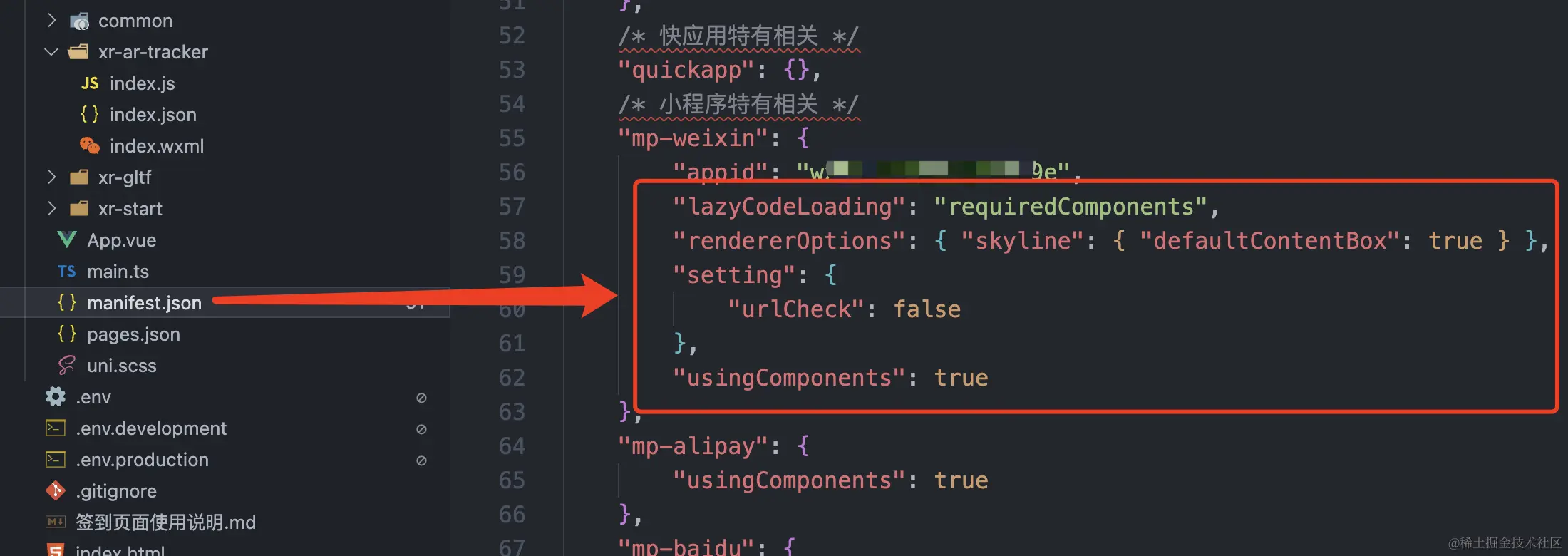 还要在manifest.json中配置上usingComponents和lazyCodeLoading为true: