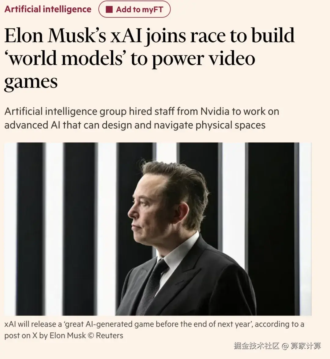 最近,马斯克旗下的人工智能公司xAI正加速推进世界模型研发。据《金融时报》报道,xAI已从英伟达挖来两名核心研究员,计划将世界模型技术应用于游戏和机器人领域。