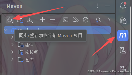 第四步:打开右侧的Maven,重新加载项目,如果加载失败多试几遍(网络问题)