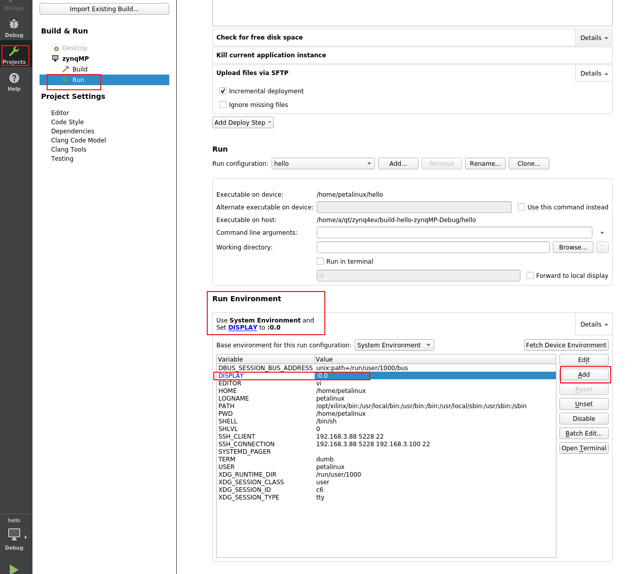 如果系统里没有自动设置显示环境变量会运行不成功,在运行环境里可以设置,增加需要设置的环境变量。
