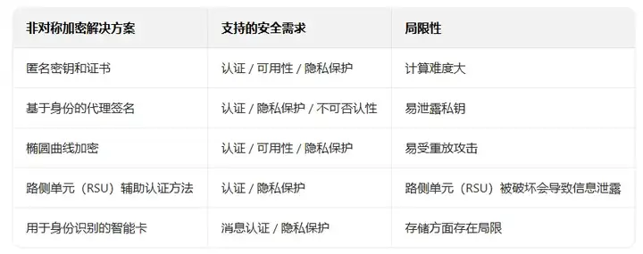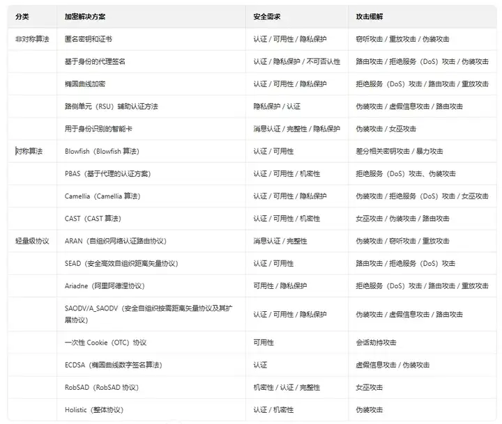 表 2、车载自组织网络(VANET)的非对称加密解决方案