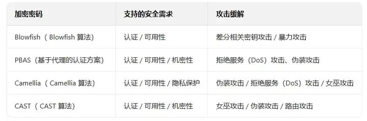 表 5、攻击缓解和安全需求支持的加密技术总结