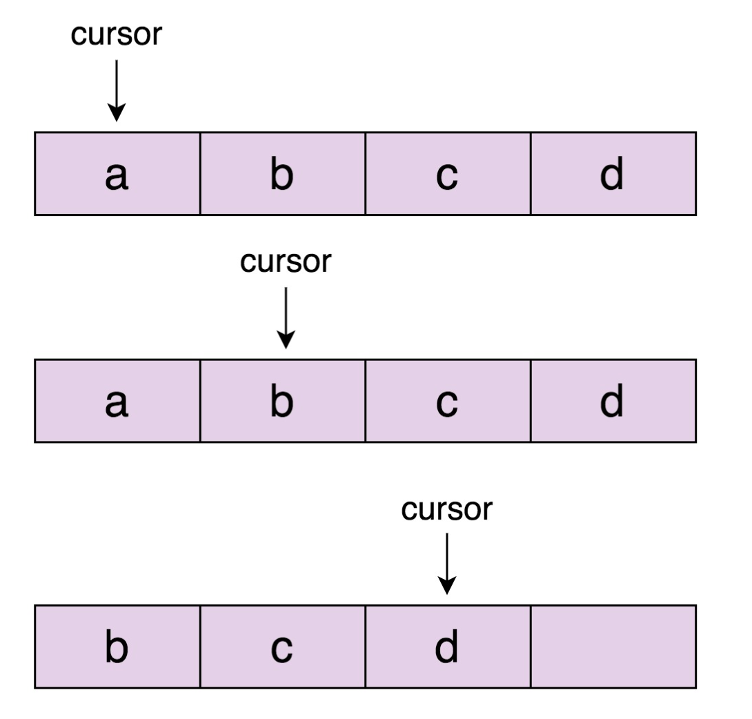 如上图所示:当游标指向 b 的时候,删除了数组中的 a 元素,由于数组会进行补齐,所以 cursor 会指向 d,元素 c 就会错过遍历。如果指向最后一个元素的时候被删了,那么可能会出现空指针。事实上,在计算机中,不可预知的结果(出错或不出错)比出错更让人头疼,因此最好的处理方式就是只要出现了预期之外的操作就报错,让开发人员尽快处理这样的操作。
