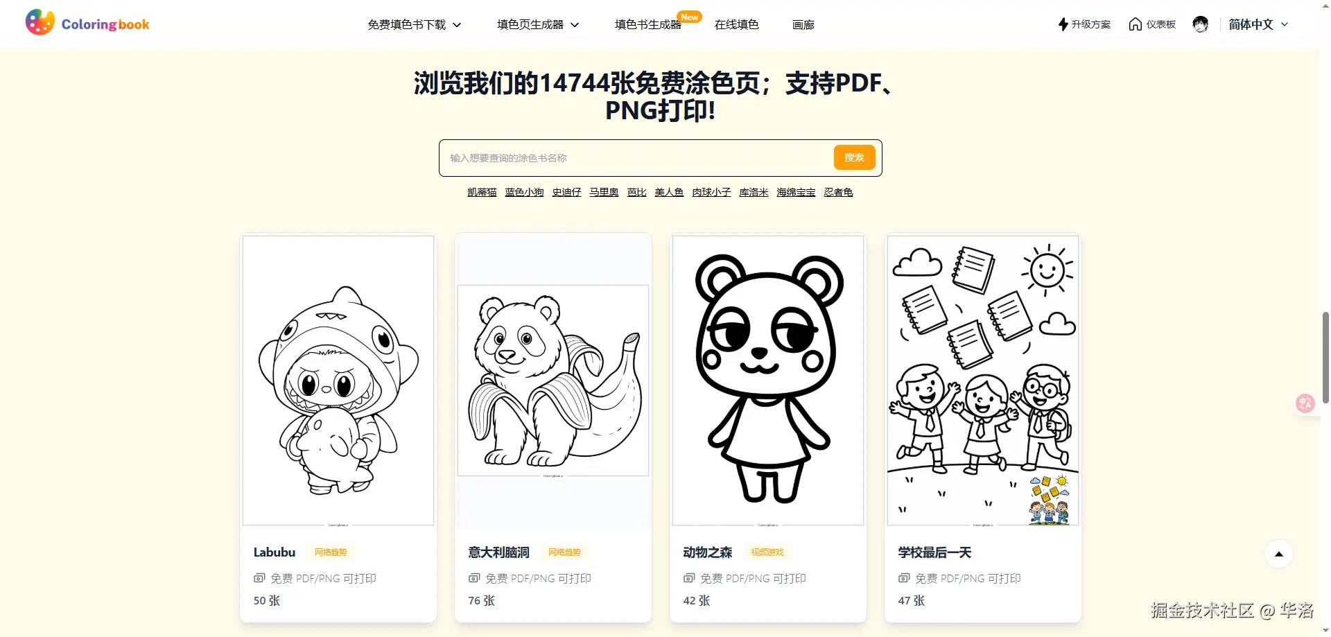 看上面coloringbook的截图,他们提供了14744张免费的各类涂色卡支持下载。