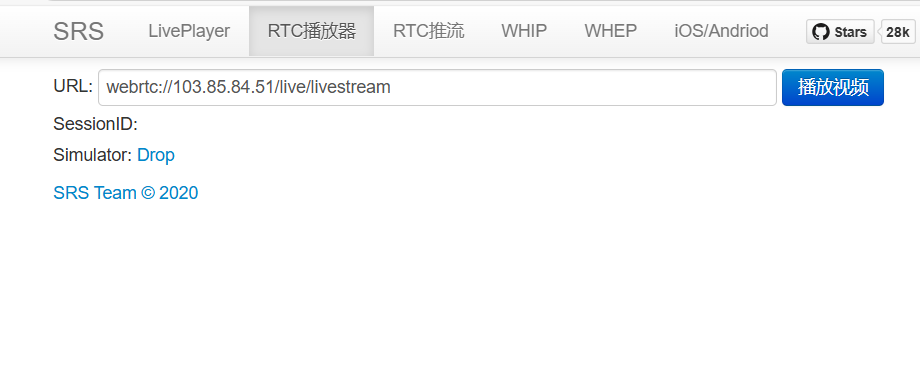 打开http://localhost:8080/players/rtc_player.html 这是测试地址,可以直接播放web_rtc视频,该服务的默认端口是8080,这个端口在srs.conf里面也可以修改。