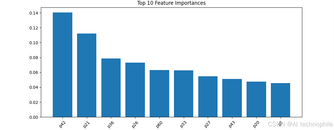 indices = np.argsort(importances)[::-1][:10]