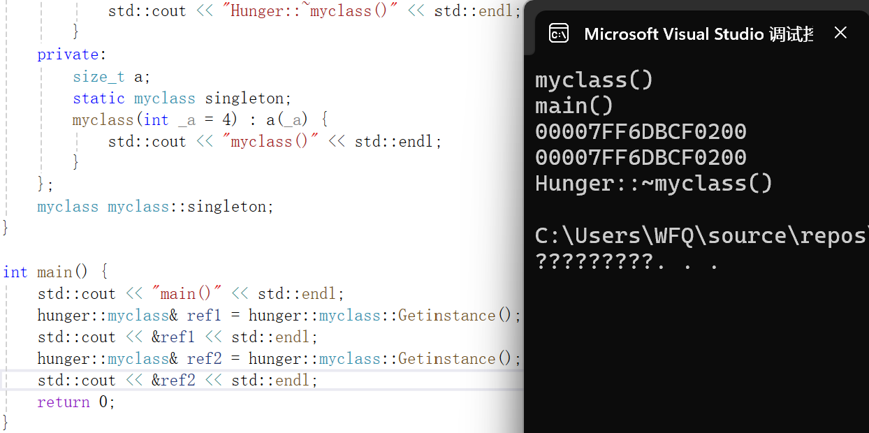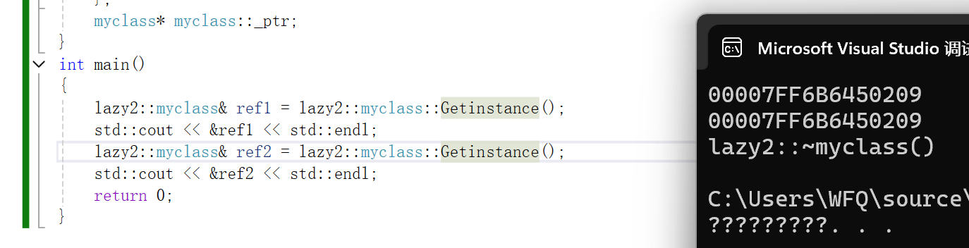lazy2::myclass& ref1 = lazy2::myclass::Getinstance();