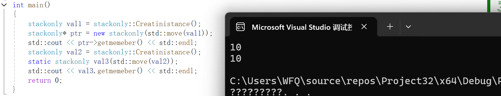 stackonly* ptr = new stackonly(std::move(val1)); // 调用移动构造