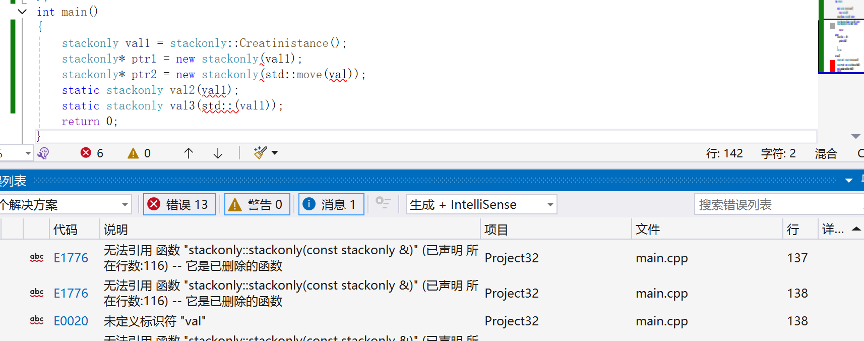 stackonly* ptr = new stackonly(val1); // 错误:拷贝构造函数被删除