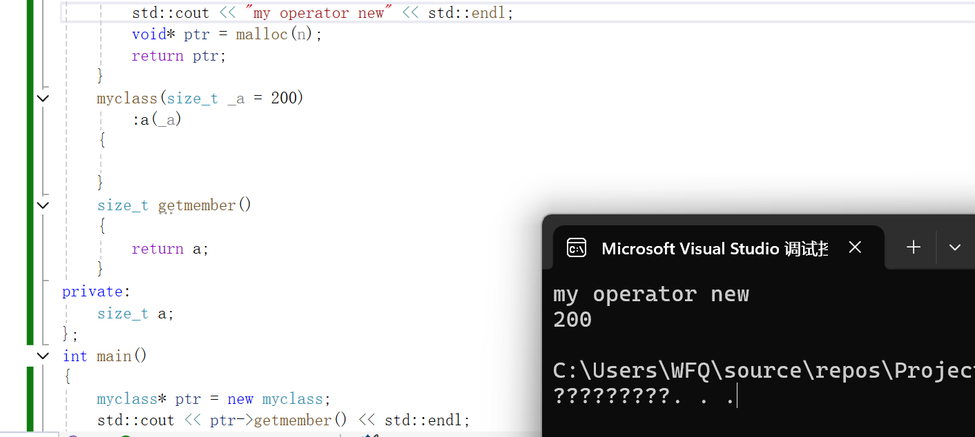 myclass* ptr = new myclass; // 调用 myclass::operator new