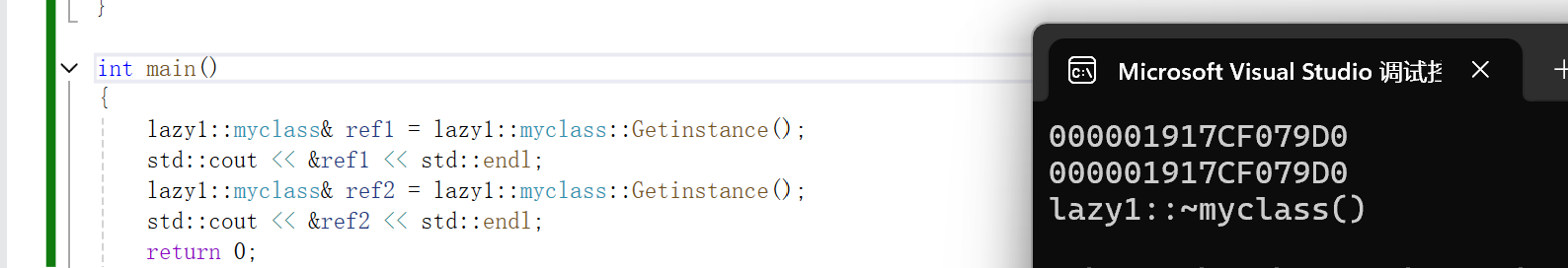 lazy1::myclass& ref2 = lazy1::myclass::Getinstance();