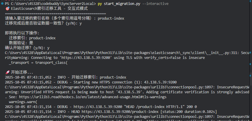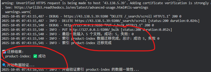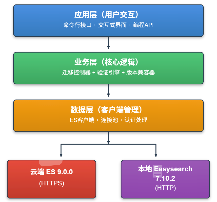 from migration_tool import ElasticsearchMigrationTool# 创建迁移工具实例migration_tool = ElasticsearchMigrationTool()# 迁移单个索引result = migration_tool.migrate_index('product-index')print(f"迁移结果: {result}")# 迁移多个索引indices = ['product-index', 'user_behavior', 'logs-2024']results = migration_tool.migrate_indices(indices, validate=True)# 自定义迁移配置custom_tool = ElasticsearchMigrationTool( batch_size=500, # 每批500个文档 scroll_time='5m', # 5分钟滚动窗口 max_retries=5 # 最大重试5次)