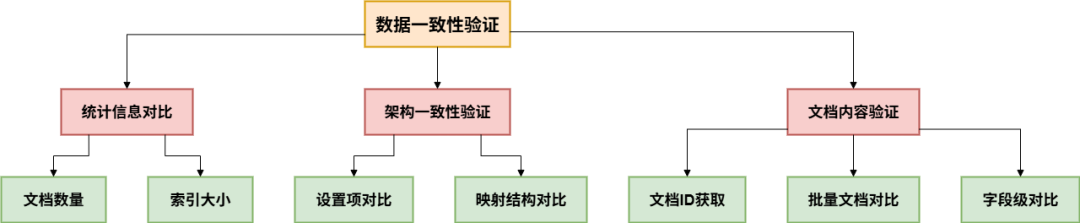 通过统计信息验证确保文档总数一致性,通过设置和映射验证保障索引结构的等价性,通过文档级深度对比验证数据内容的准确性。