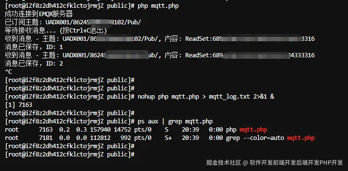 写一个单独的php文件,订阅mqtt的主题,并连接数据库,写入接收到的消息