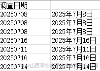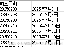2.3小插曲之日期的更改,表格记录的信息为20250703格式的日期,但是文档需要呈现的时2025年07月03日,如果在表格中不做修改,那么最终在文档中关联的数据也是20250703格式的,表格为了便于输入,所以采用的是数字的直接输入的模式,即20250703,为了数据最终的展现,那么对数据就应该处理,此处分为两步:
