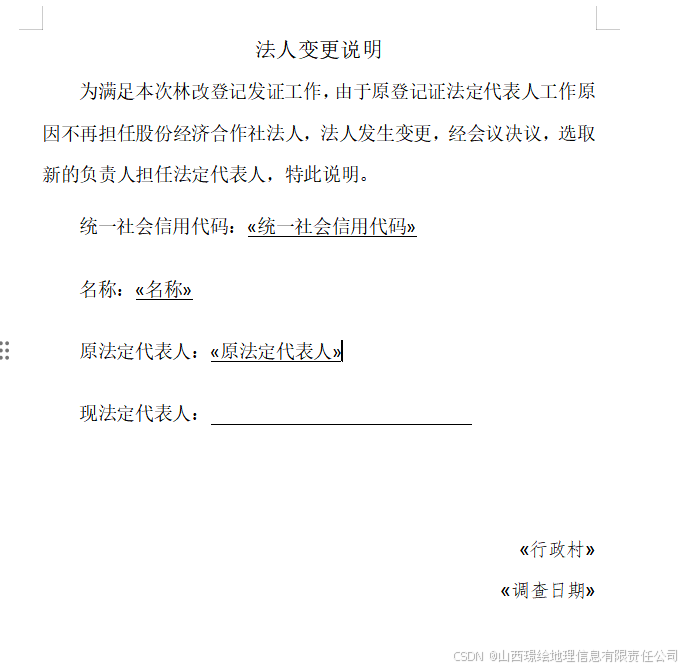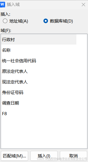 日期插入的域代码,此处关联的就是表格文件中的调查日期一列的数据