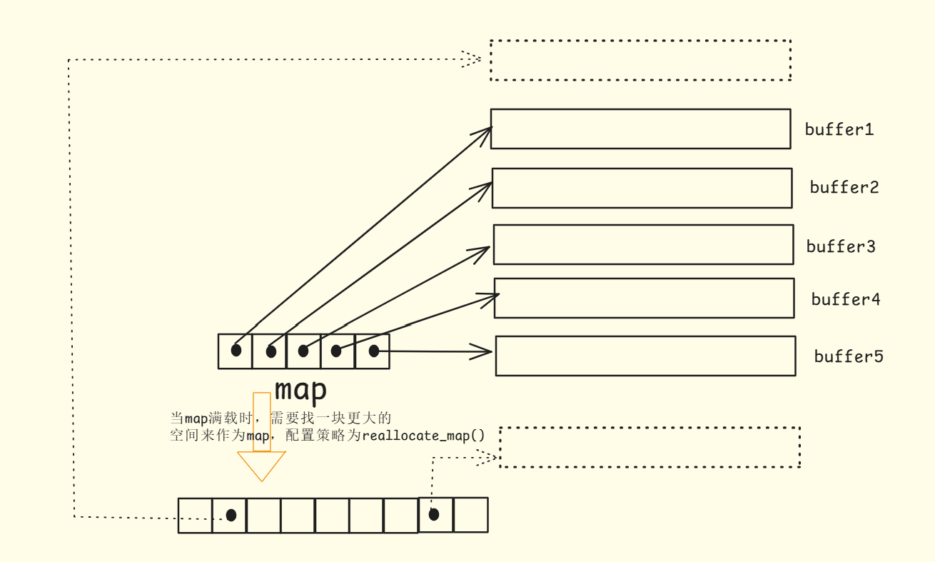 那样一整条连续的内存,而是把元素分配在若干个定长的数据块中 ,在用一张指针表(map)(又称中控数组)记录各个区块的地址。可以在两端扩张