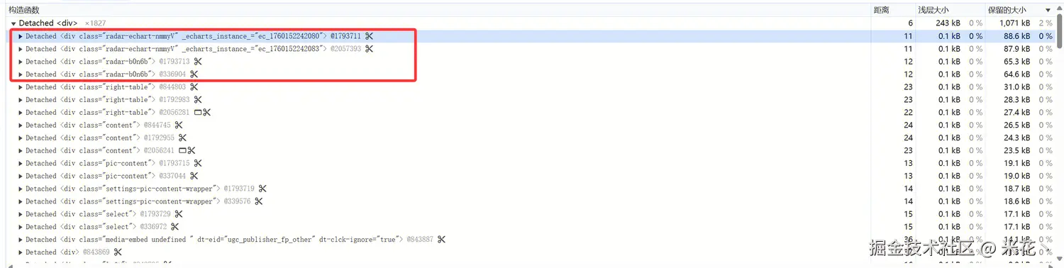 查看这里的代码,发现echarts实例没有卸载逻辑: