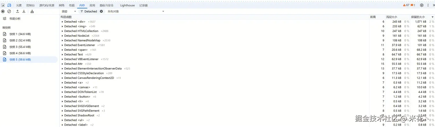 使用内存堆快照检测分离的 DOM 内存泄漏