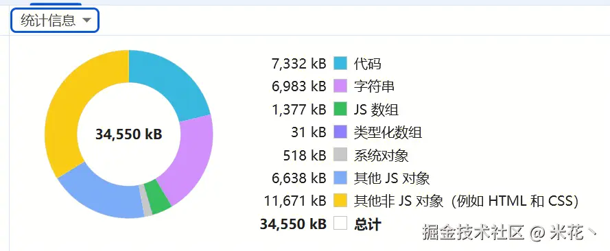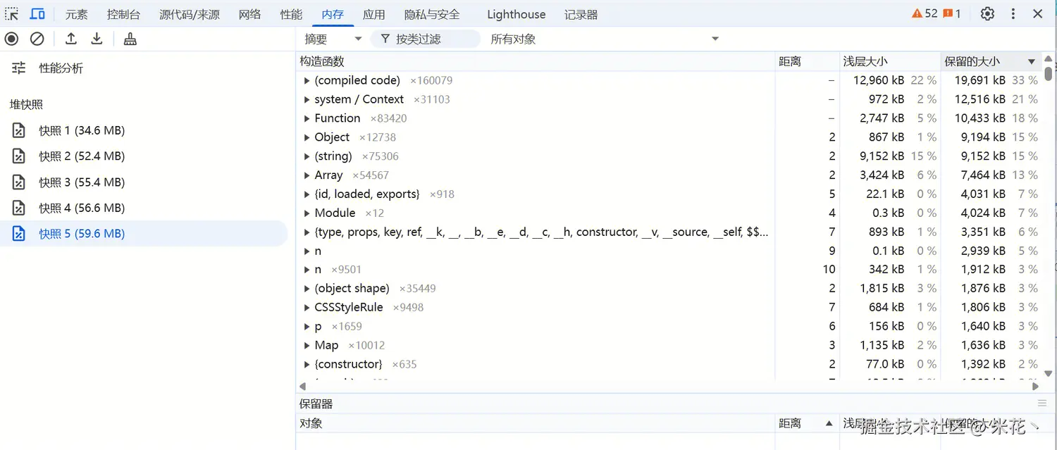 :这类对象每个自身占多少内存,加总展示。数组和字符串浅层大小通常最大,因为它们内容直接塞在对象本体里。 -