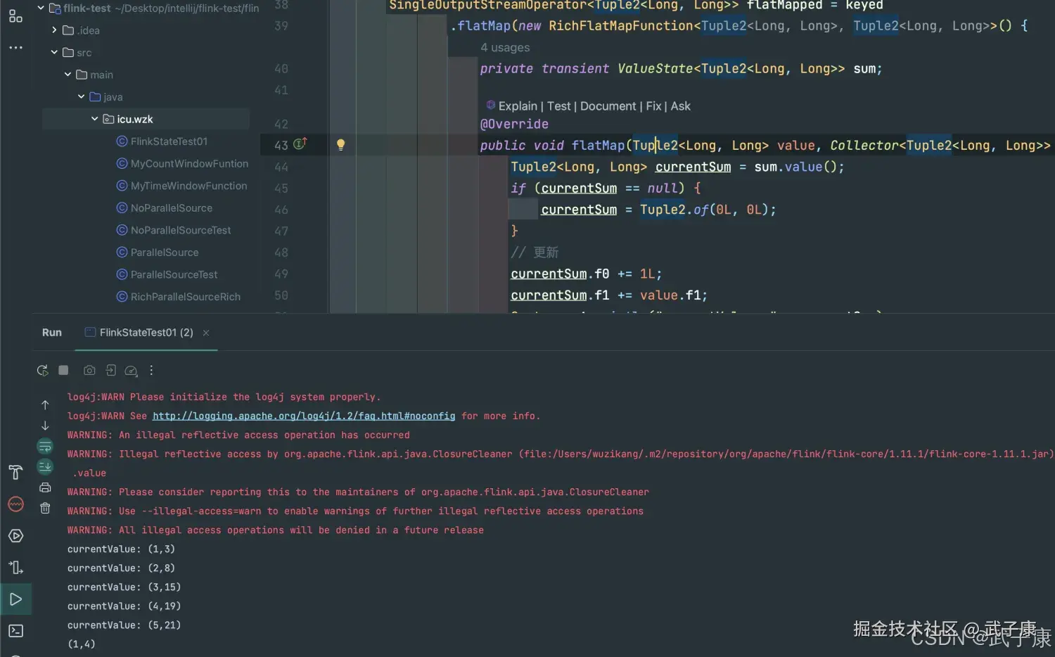 - ListState:即Key上的状态值为一个列表,可以通过add方法往列表中附加值,也可以通过get()方法返回一个Iterable来遍历状态值