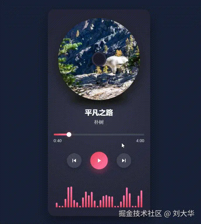 大家好,我是大华! 这篇文章将分享一下如何使用Vue3打造一个优雅的音乐播放器。这个播放器拥有精美的视觉效果,包括旋转专辑封面、动态进度条和音频可视化效果。