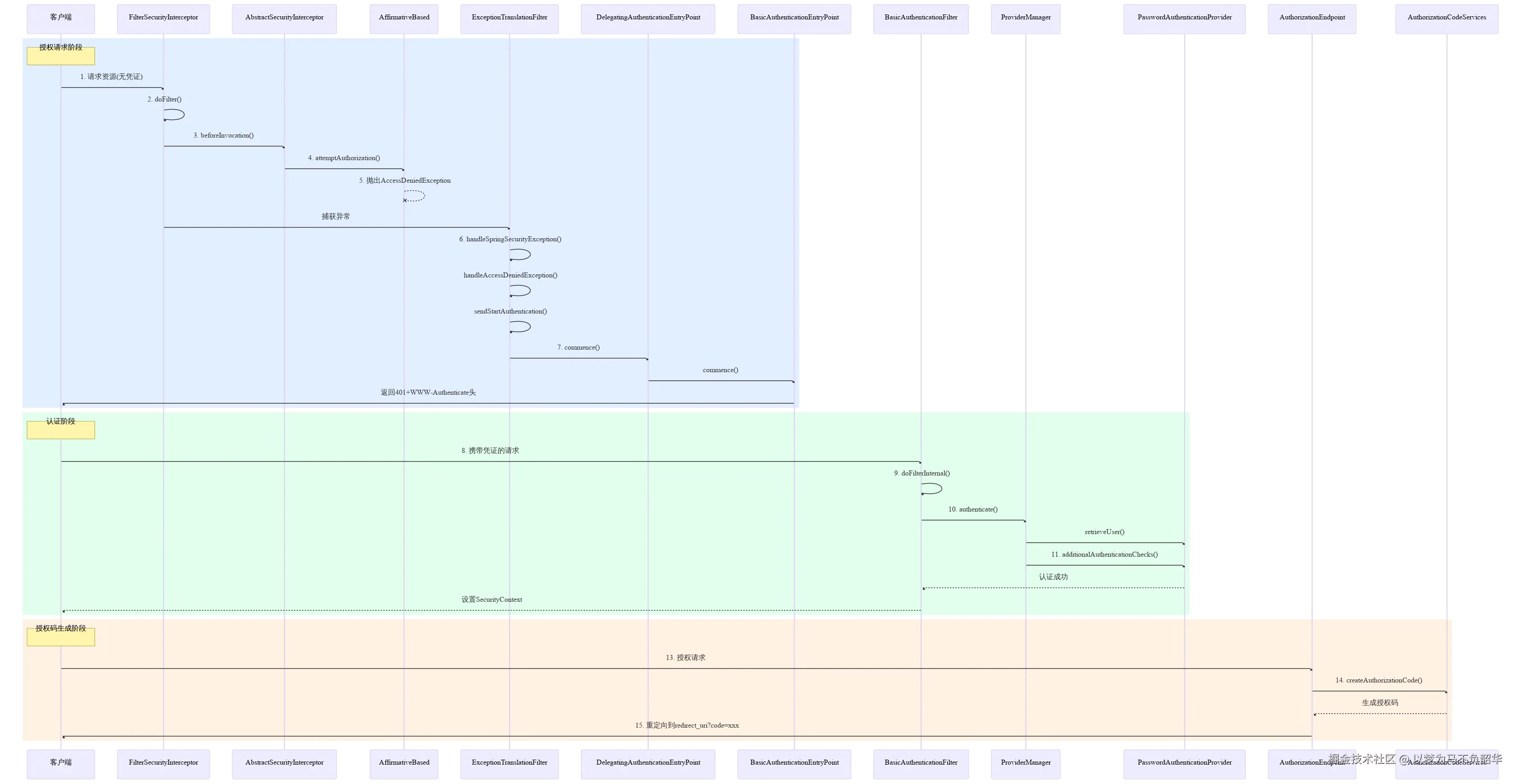 以授权码模式登录为例,源码讲述整个登录过程,授权码登录分两步,分别是获取code码,和获取token两步 原图地址 下面是对这些过程的简要介绍,清晰说明每个步骤的核心功能: