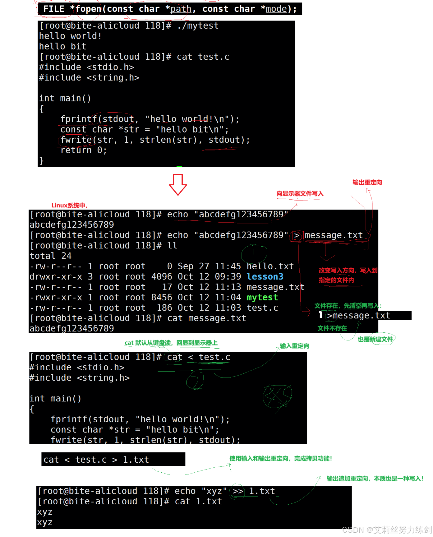 [whb@bite-alicloud test]$ echo "你好⽐特就业课">myfile.txt