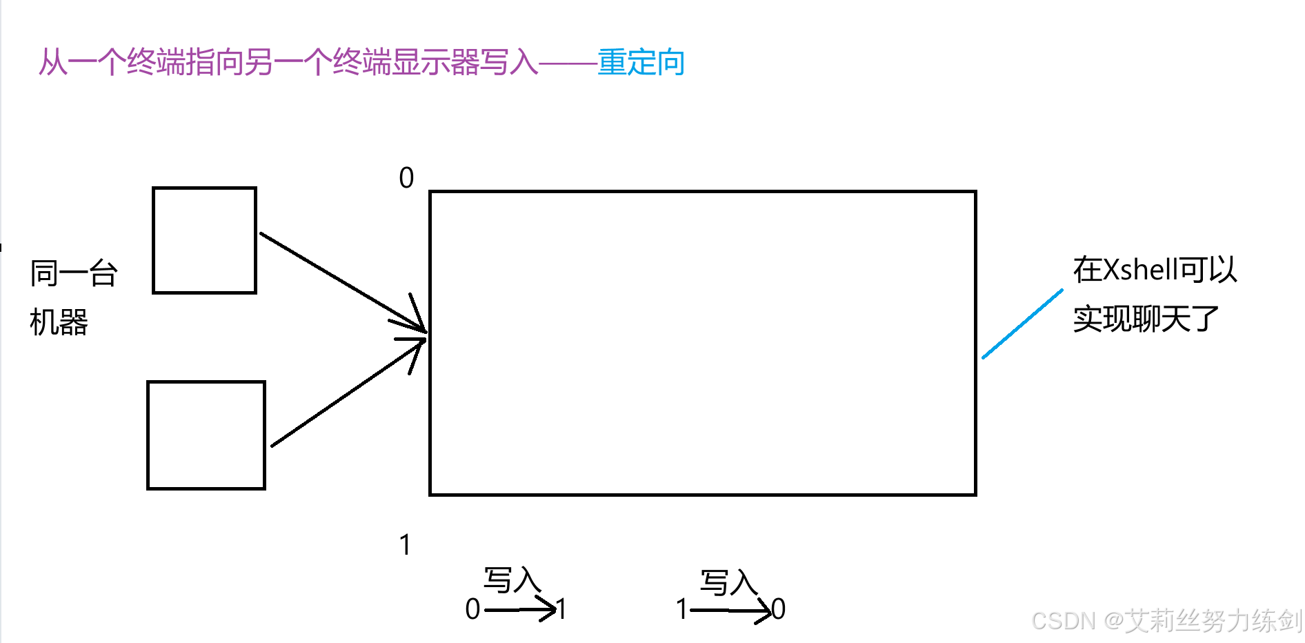 概念:从一个终端向另一个终端显示器写入。