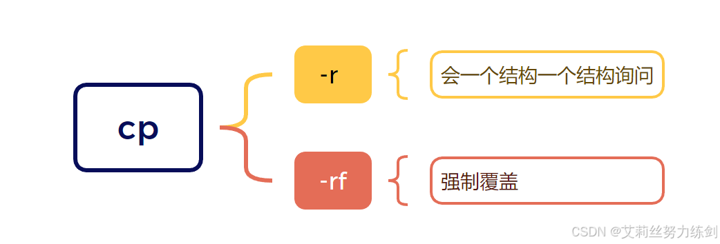 **-f:**force强制的意思,如果目标文件已经存在,不会询问而直接覆盖。