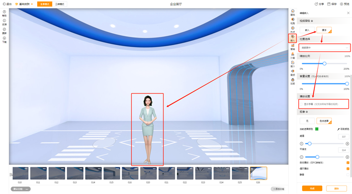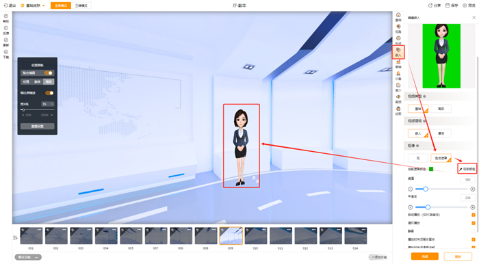 步进式3D漫游作品【嵌入视频】新增【色度遮罩】、【漂浮】功能。