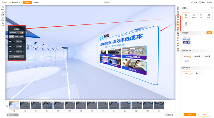 合作商在制作3D漫游作品时,嵌入素材时简单调整,即可达到素材和空间的无缝融合,商家不用再费时费力,嵌入图片或视频或其他素材可又快又好,让场景更真实,信息曝光度更高。