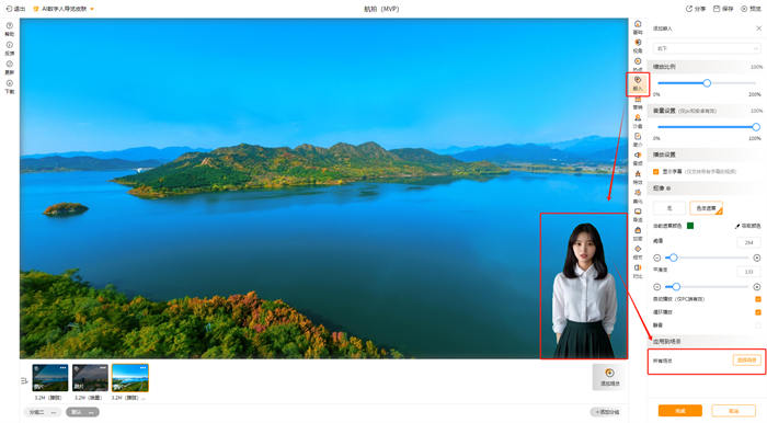 合作商在制作时,可以任意选择将AI数字人皮肤应用在不同场景中,丰富作品的多样性。嵌入的视频也可以按需选择在相应的场景中出现,便于达到最好的效果。