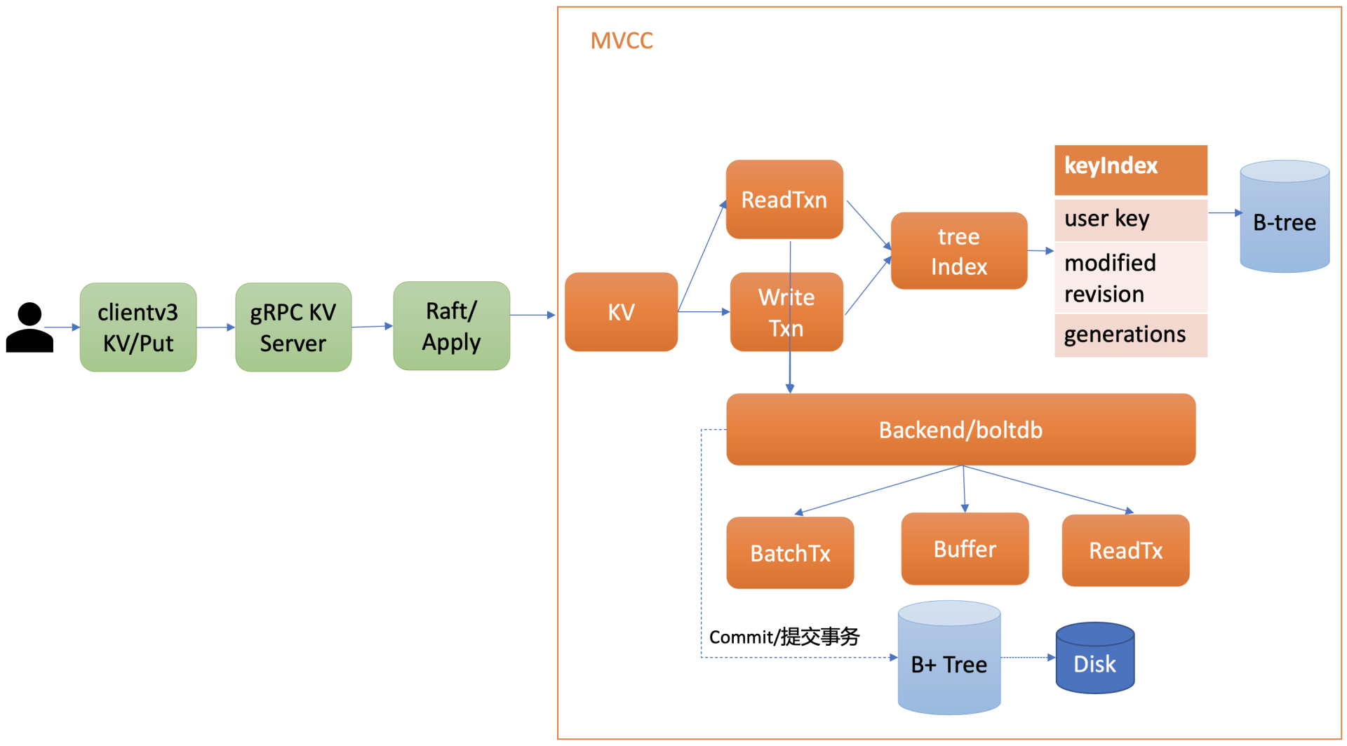 当你通过API发起一个Compact请求后,KV Server收到Compact请求提交到Raft模块处理,在Raft模块中提交后,Apply模块就会通过MVCC模块的Compact接口执行此压缩任务。