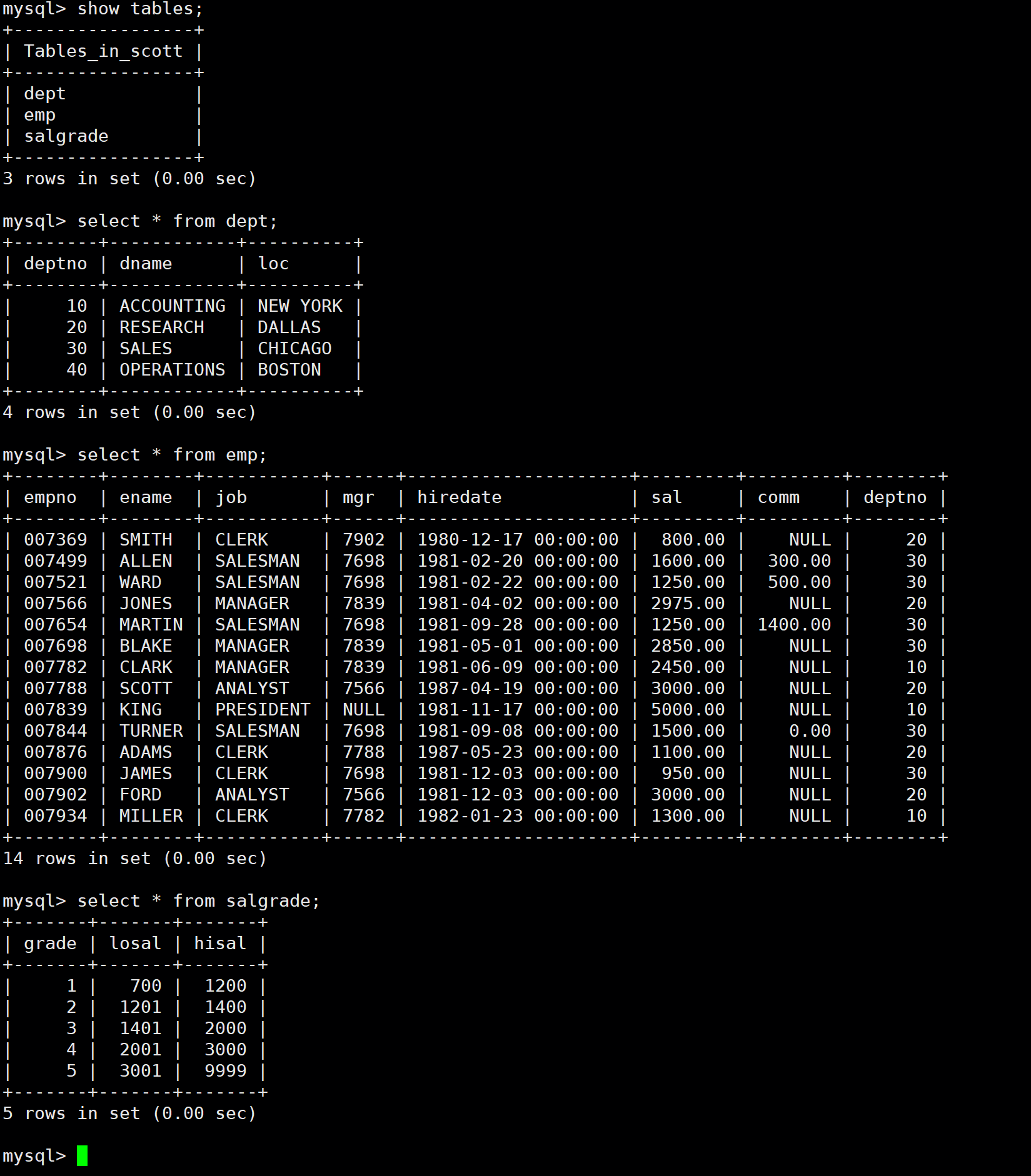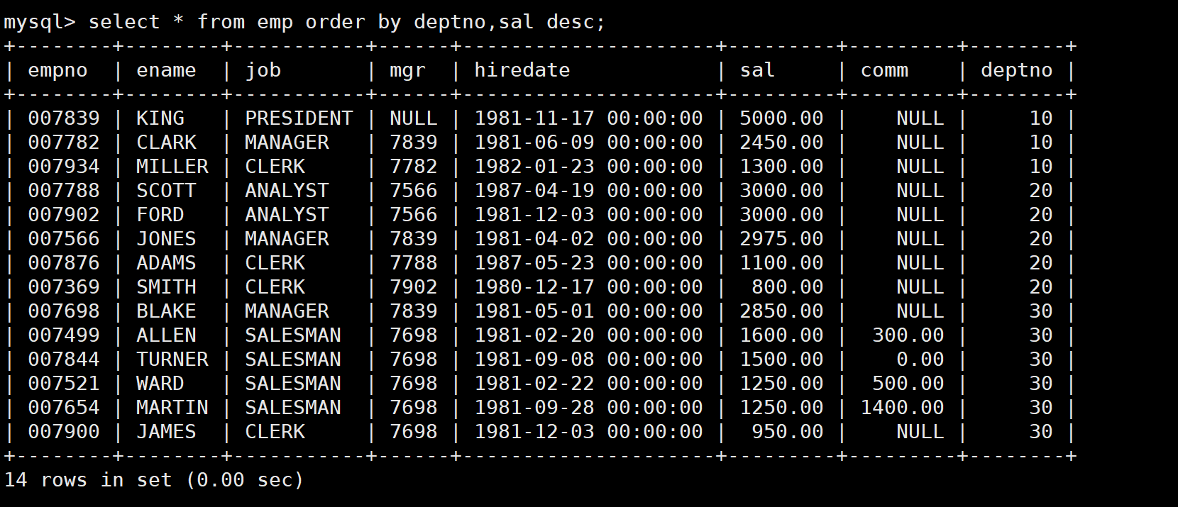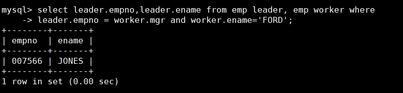 此外,解决该问题也可以使用自连接,因为员工表中的mgr字段能够将表中员工的信息和员工领导的信息关联起来。如下: