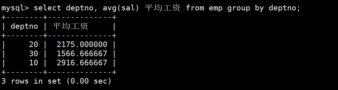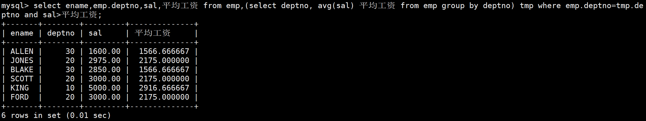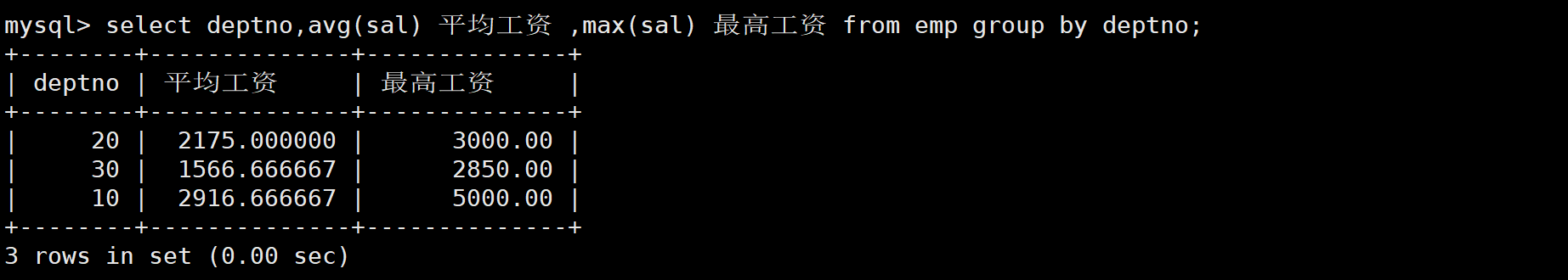 首先查询每个部门的平均工资。如下: