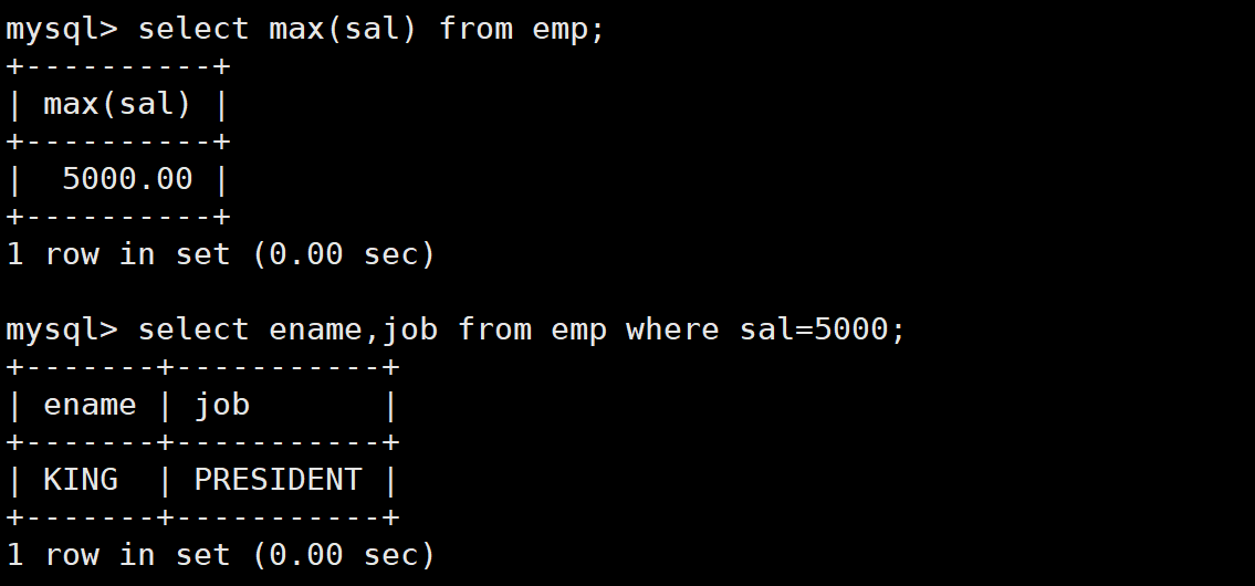 这个问题我们可以分两步来进行,首先我们找出最高工资,然后在根据查出来的结果去查询对应的员工信息。