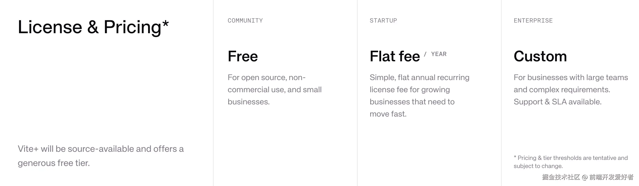 - Vite 本体仍是 MIT,不受任何影响;只有使用 Vite+ 统一 CLI 才触发授权。