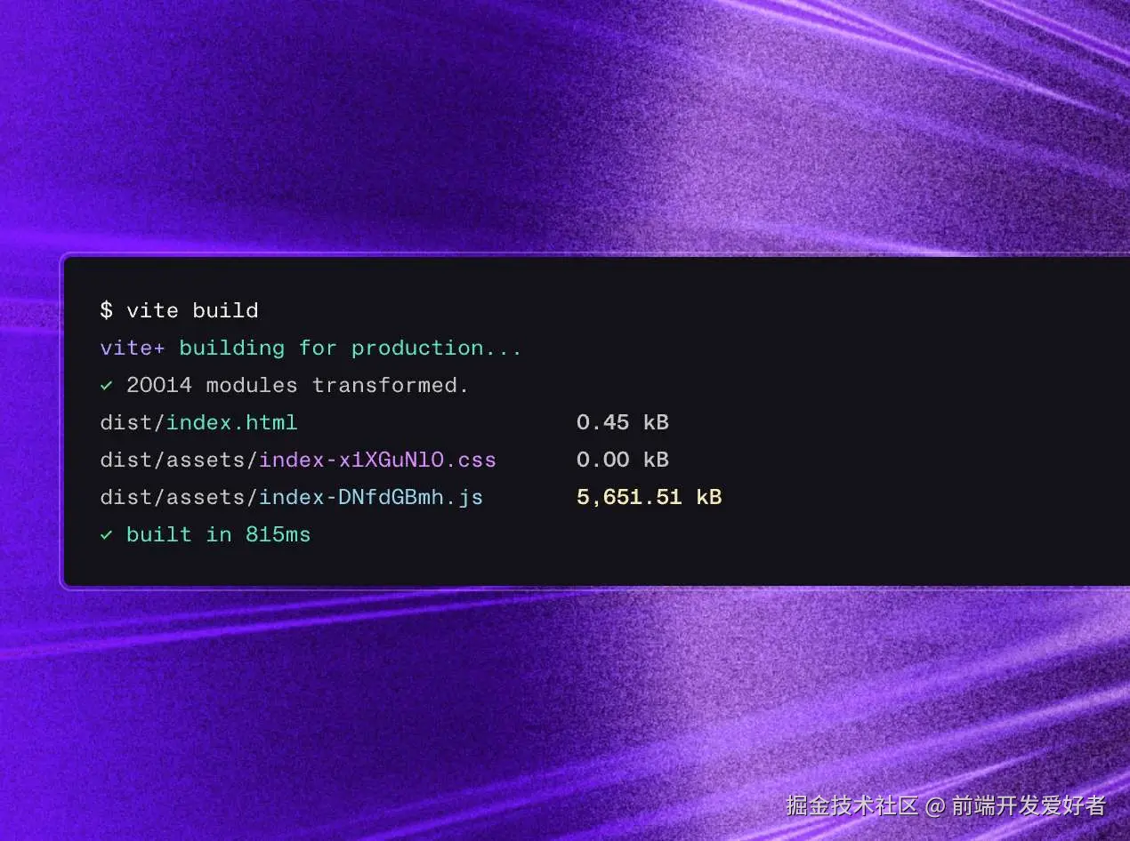 一句话:Vite+ 把原本要装七八个包、写七八份配置的前端完整工作流,全部用 Rust