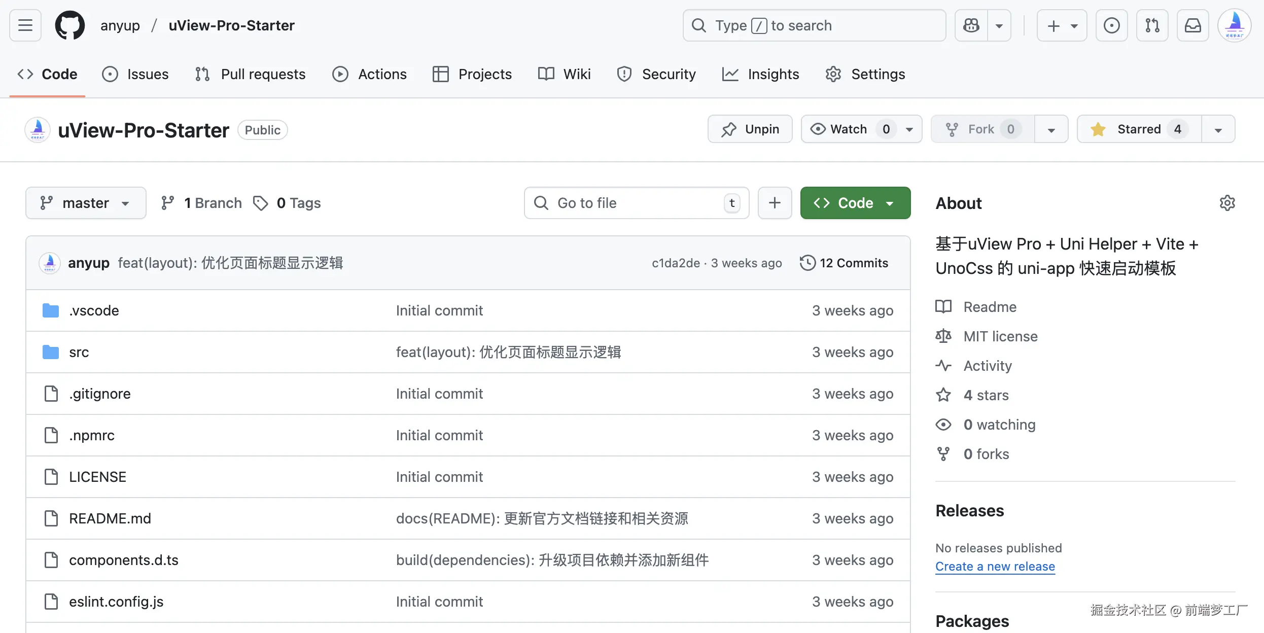 - uView Pro Starter 模板: github.com/anyup/uView...