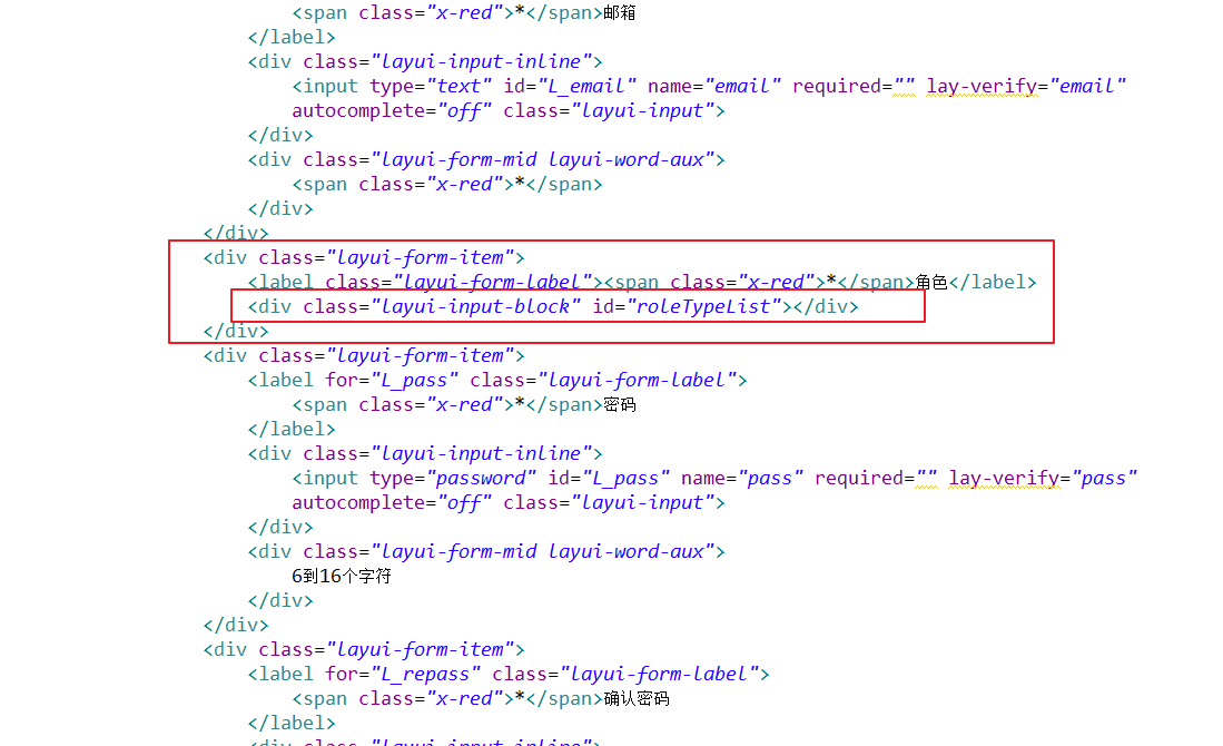 在页面中的"角色"字段位置增加自定义的复选框 div:
