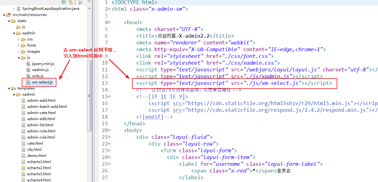 将所有 html 页面拷贝至:src/main/resources/templates/xadmin