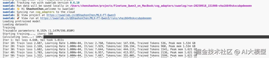 接下来在命令行启动MLX-LM微调:
