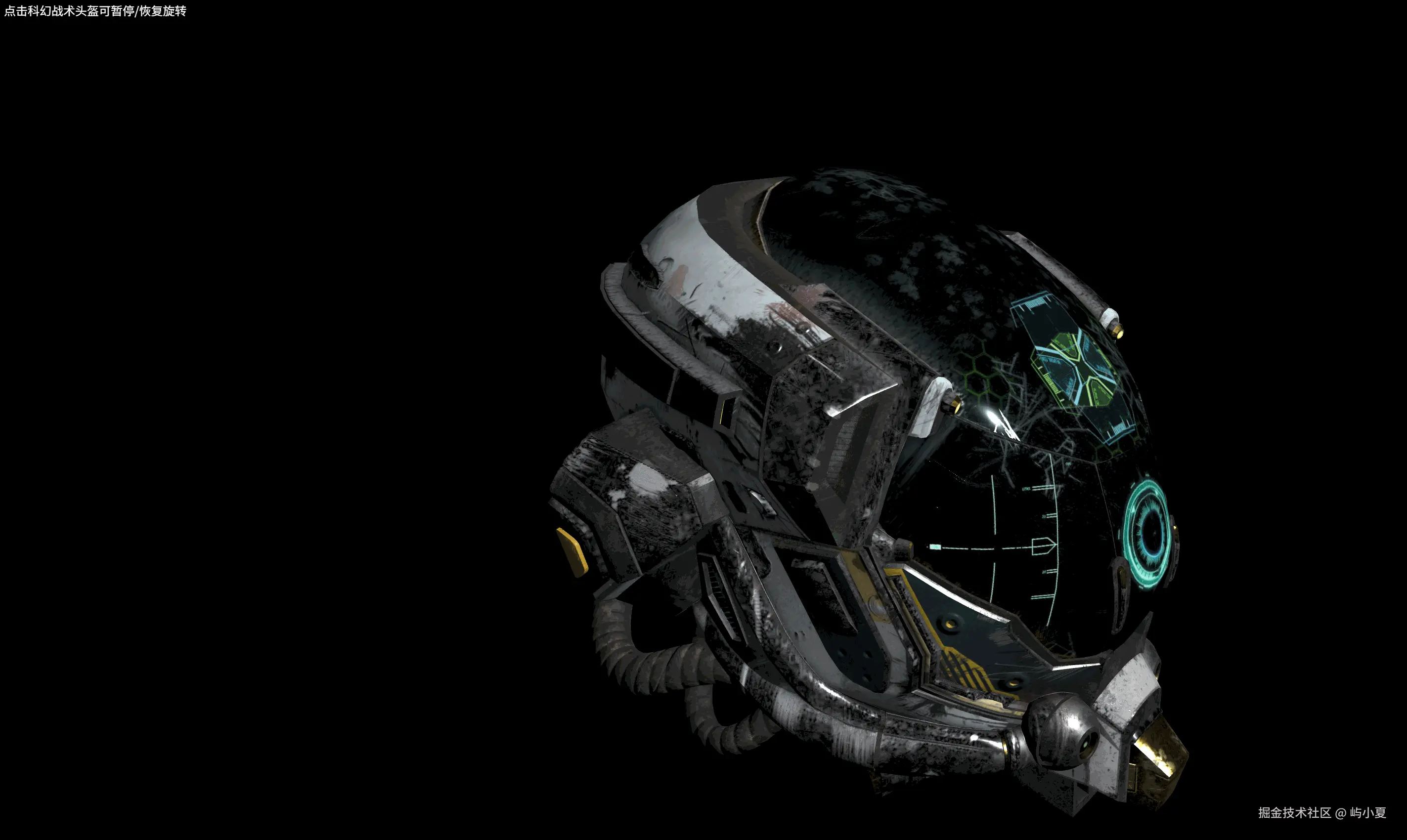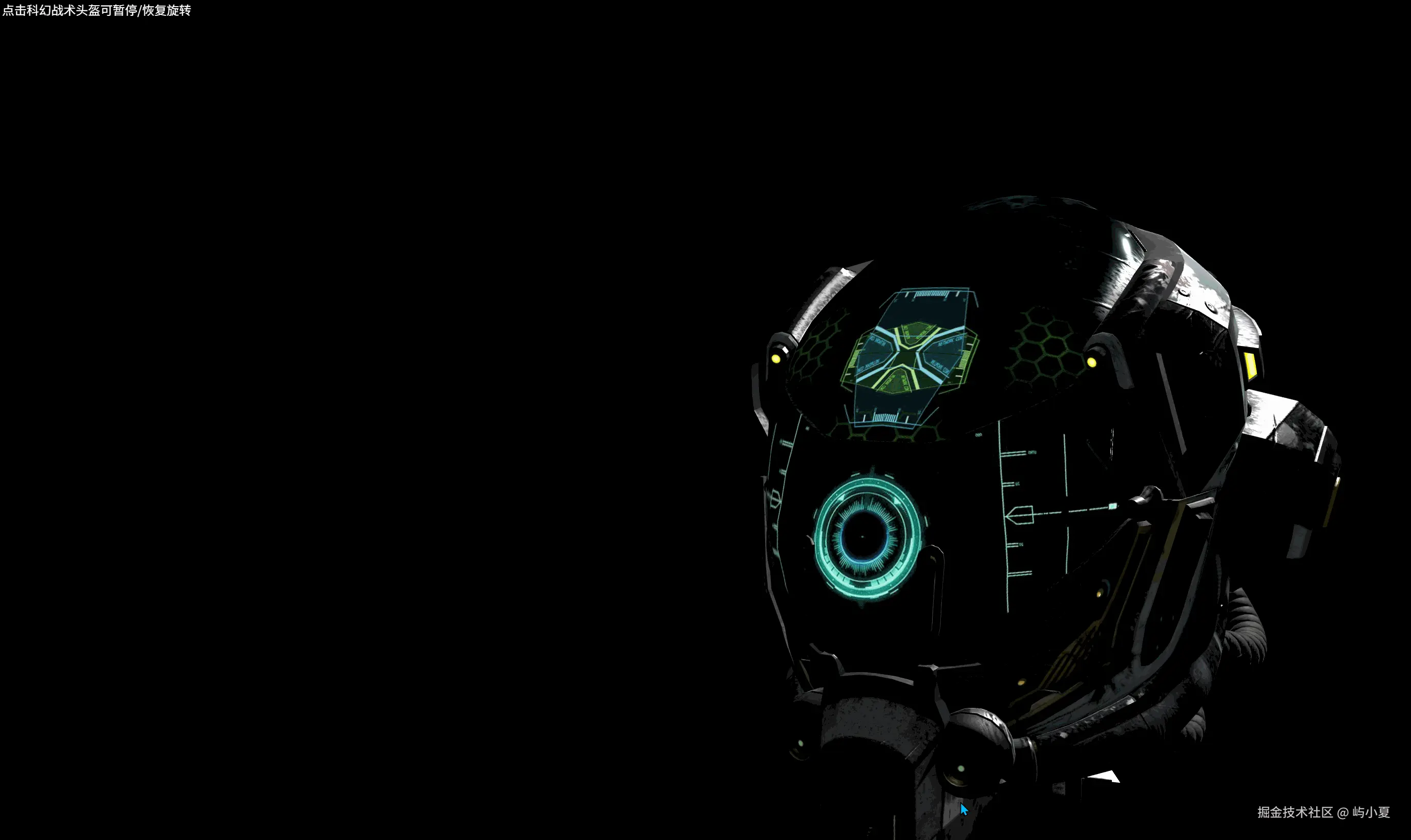 <div id="info">点击科幻战术头盔可暂停/恢复旋转</div>