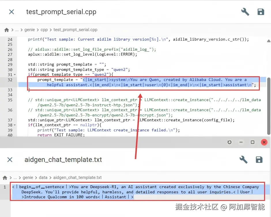 6.根据data路径下aidgen_chat_template.txt模板修改/genie/cpp路径下的test_prompt_serial.cpp文件中的提示词模板部分