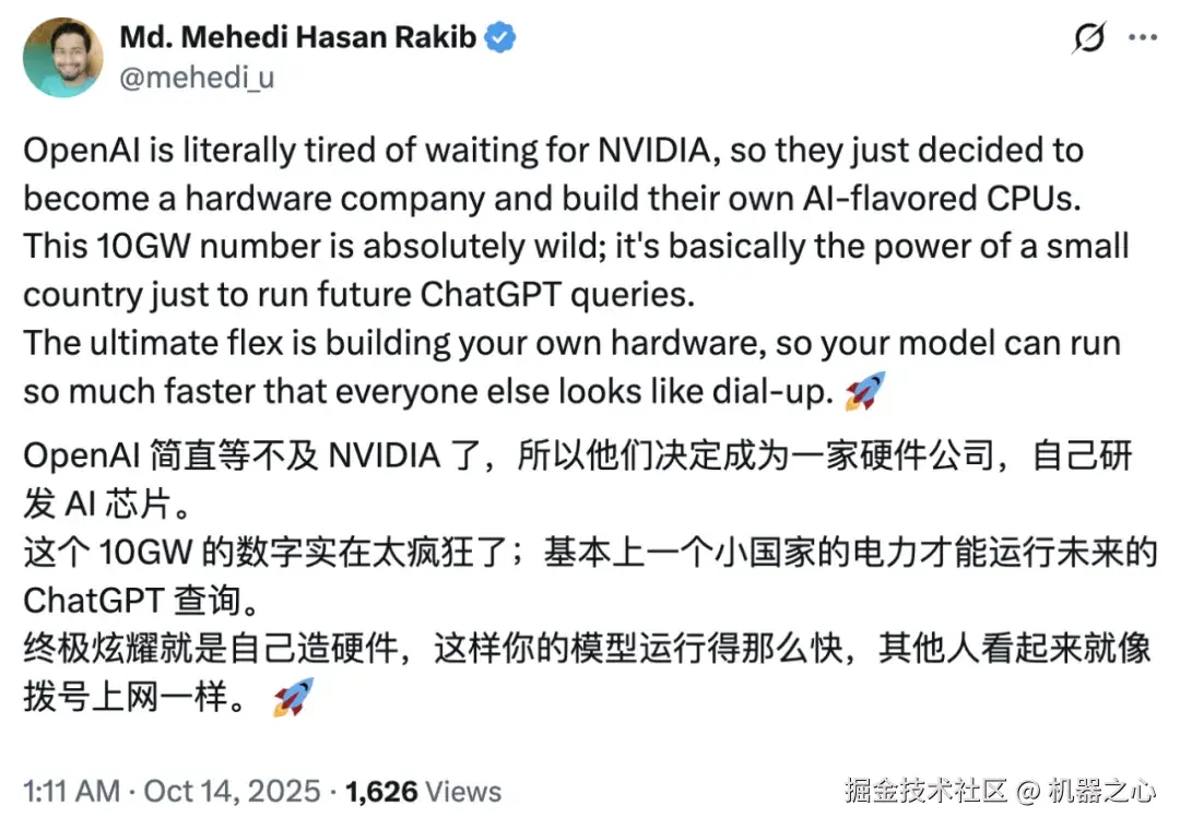 正如一位网友所言,「OpenAI 简直等不及英伟达了,于是下场自己造芯。」