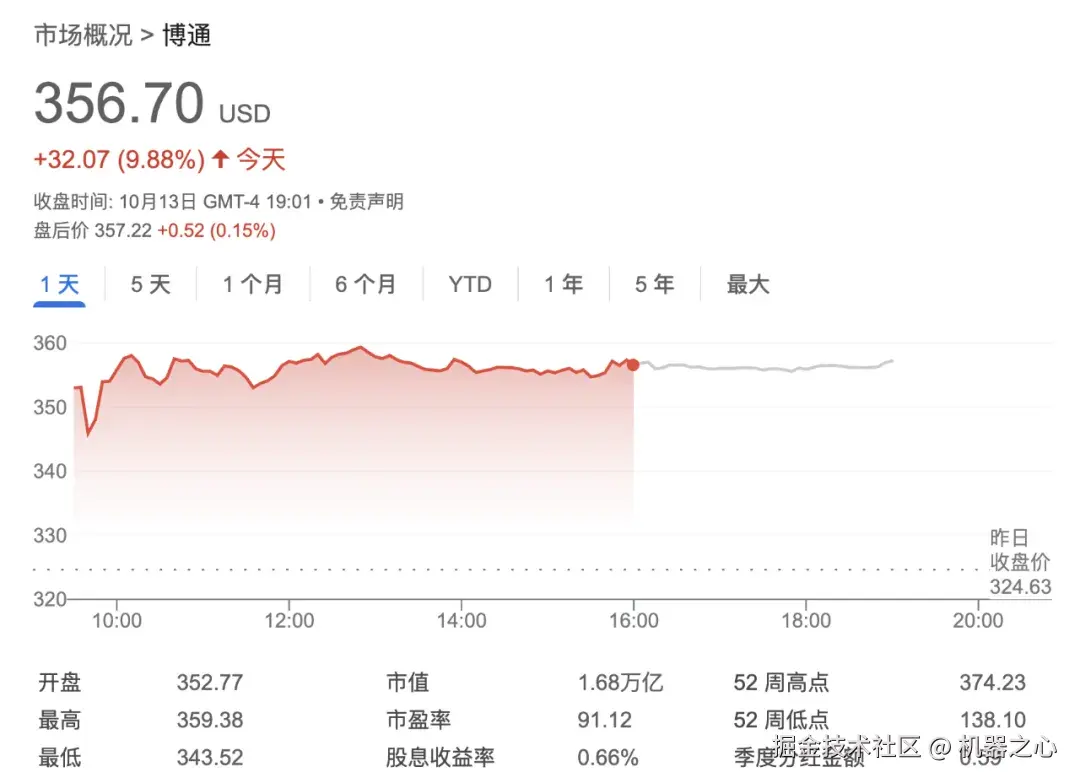 受到与 OpenAI 合作消息的影响,当地时间周一开盘后,博通股价涨近 10%,市值上涨 1500 亿美元。